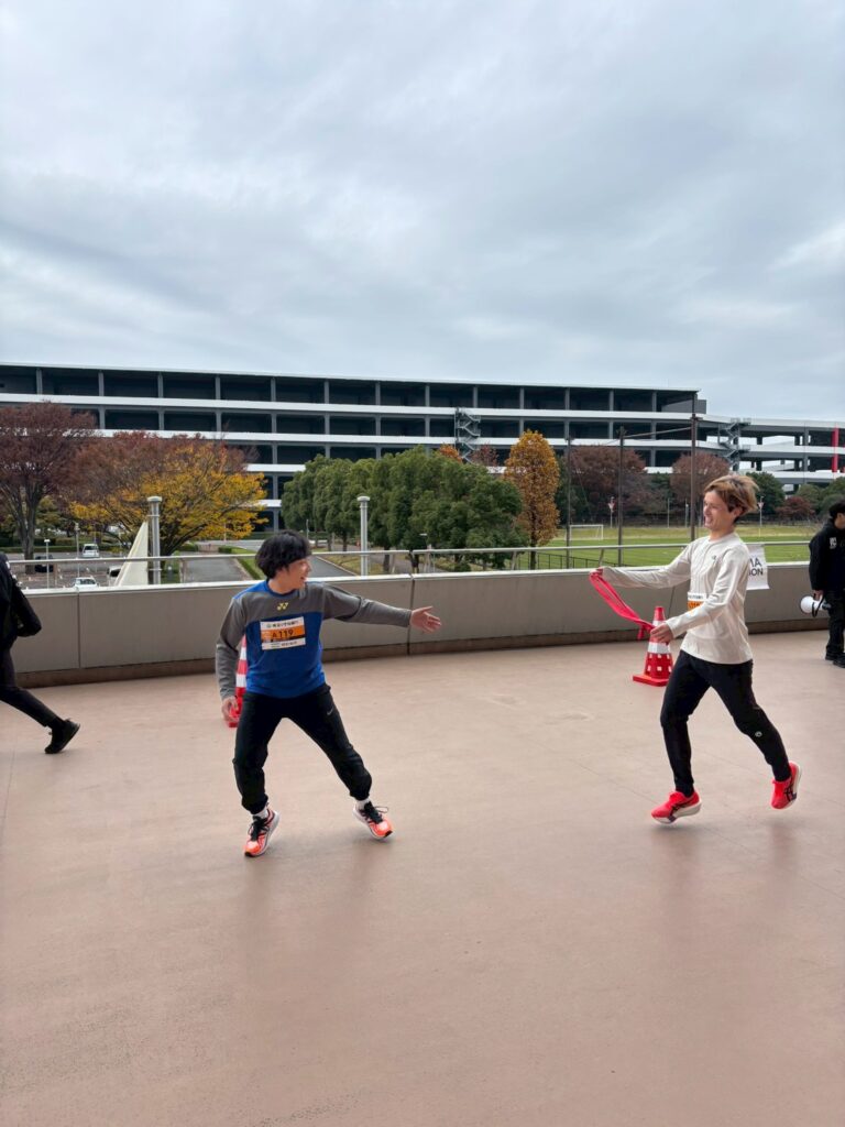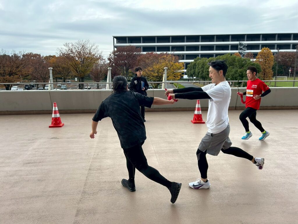 当日は、残念ながら前日に体調を崩してしまったメンバーがいたため、9人で交代しながらタスキをつなぎました。1.2kmを全力で4〜5回走ることは、まるで流行のHIITトレーニングをしているような感覚でした。
