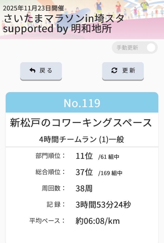 2025年11月23日(日)、私たちは「さいたまマラソン in 埼スタ」の4時間リレーマラソンに参加しました。大会は埼玉スタジアム2002の特設コース(1.2km)を舞台に、タスキをつなぎながら4時間走り続け、周回数を競うというルールです。