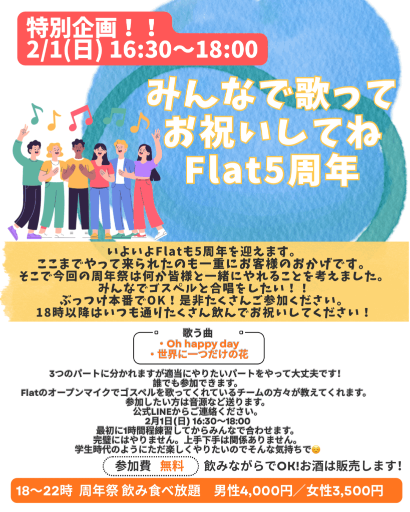 Flat5周年!2月1日(日)16:30~