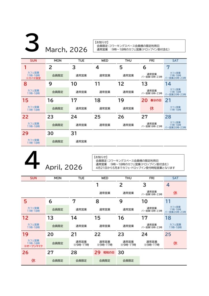 金曜は18:00〜、土曜は20:00〜営業いたします(※21日土曜はカフェ営業のみ)。