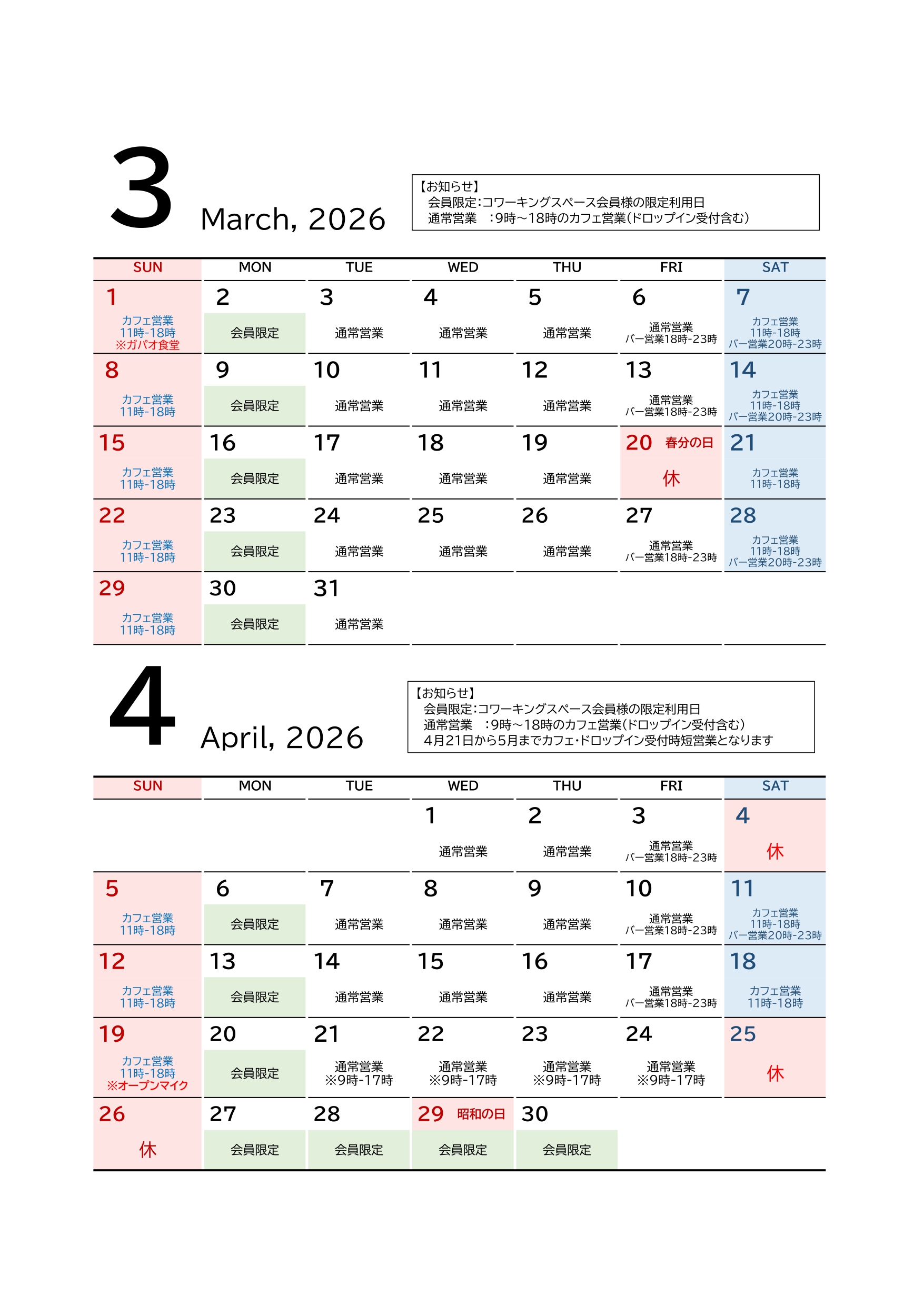 金曜は18:00〜、土曜は20:00〜営業いたします(※21日土曜はカフェ営業のみ)。